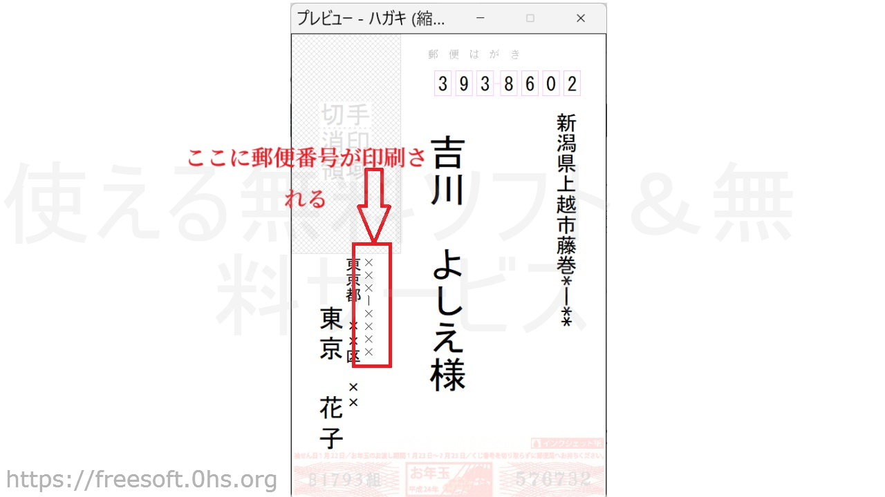 「二刀流宛名印刷」の普通はがきへ印刷した時の差出人郵便番号