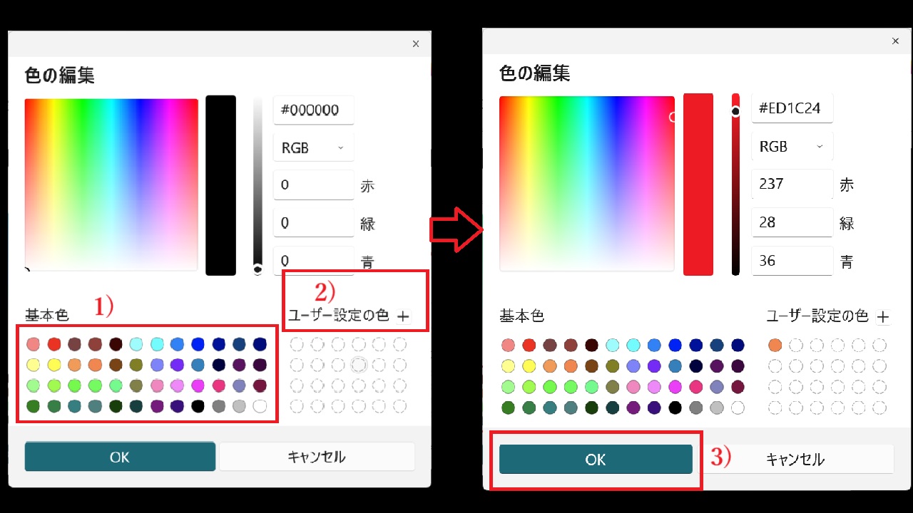 2-1-③)〔ユーザー設定の色+〕を押す。
