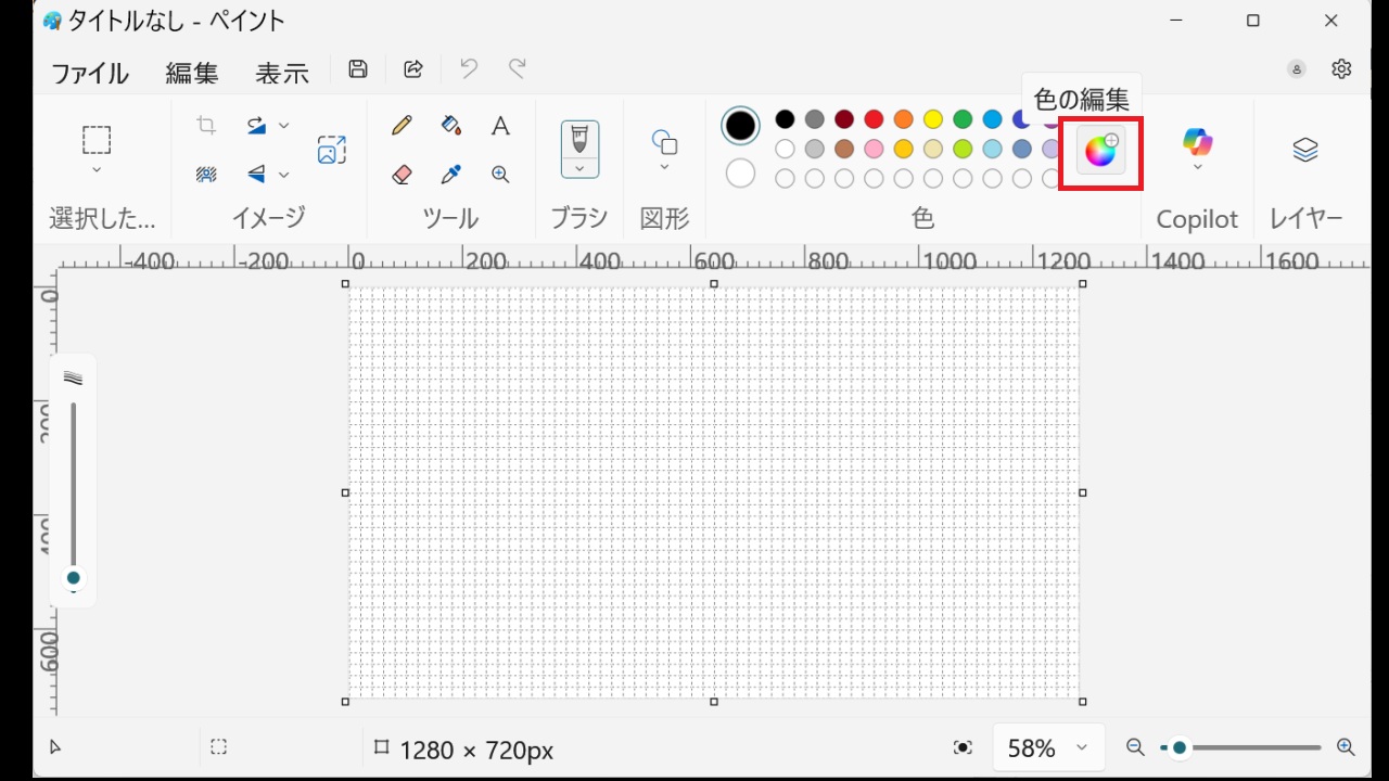 カラーパレットに色の編集で追加した色は、その画像編集画面を閉じるまでは使えるが、一回ペイントを閉じてしまうとリセットされてしまうのじゃ。