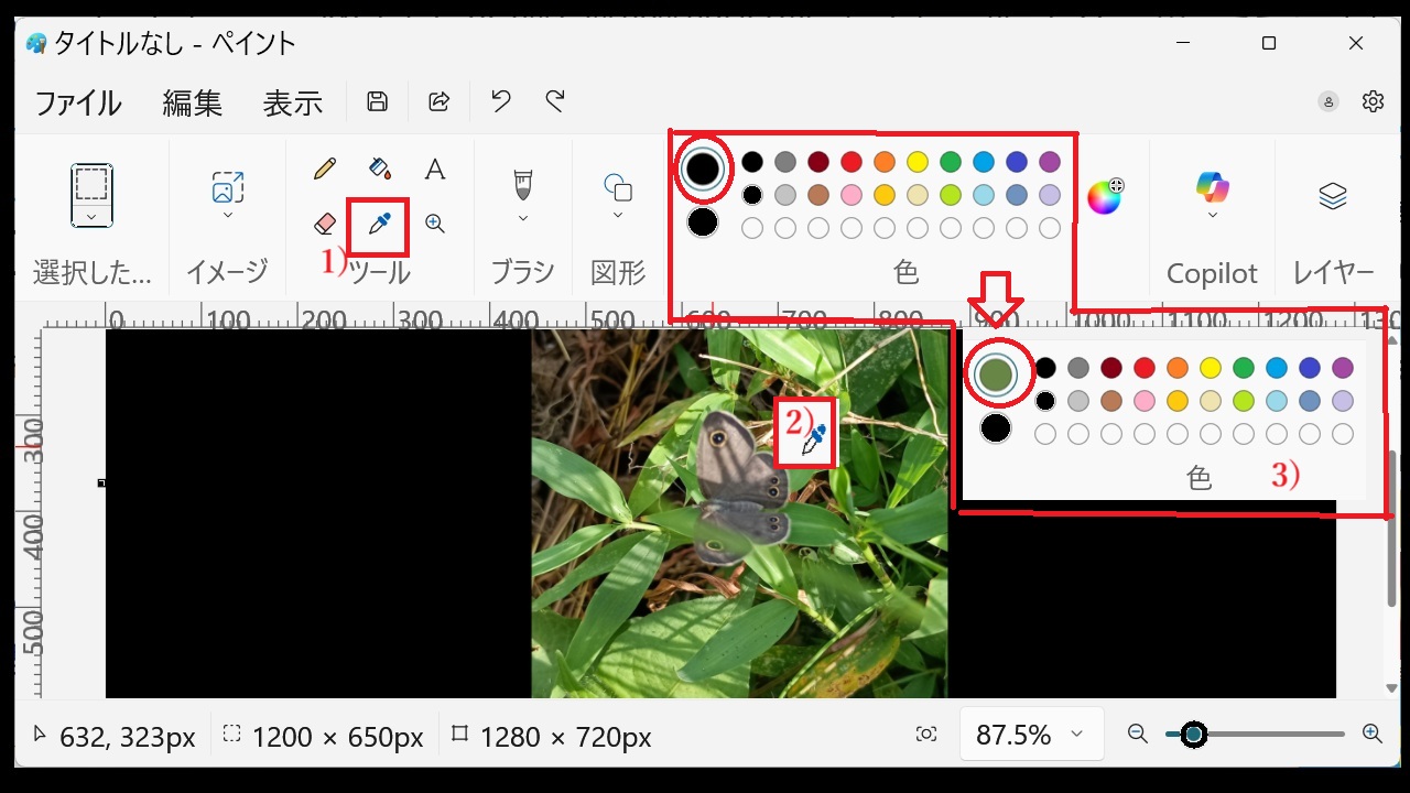 Windows付属の【ペイント】は、自分で調整した色やカラーピッカーで取得した色を一時的にカラーパレットに表示できる。