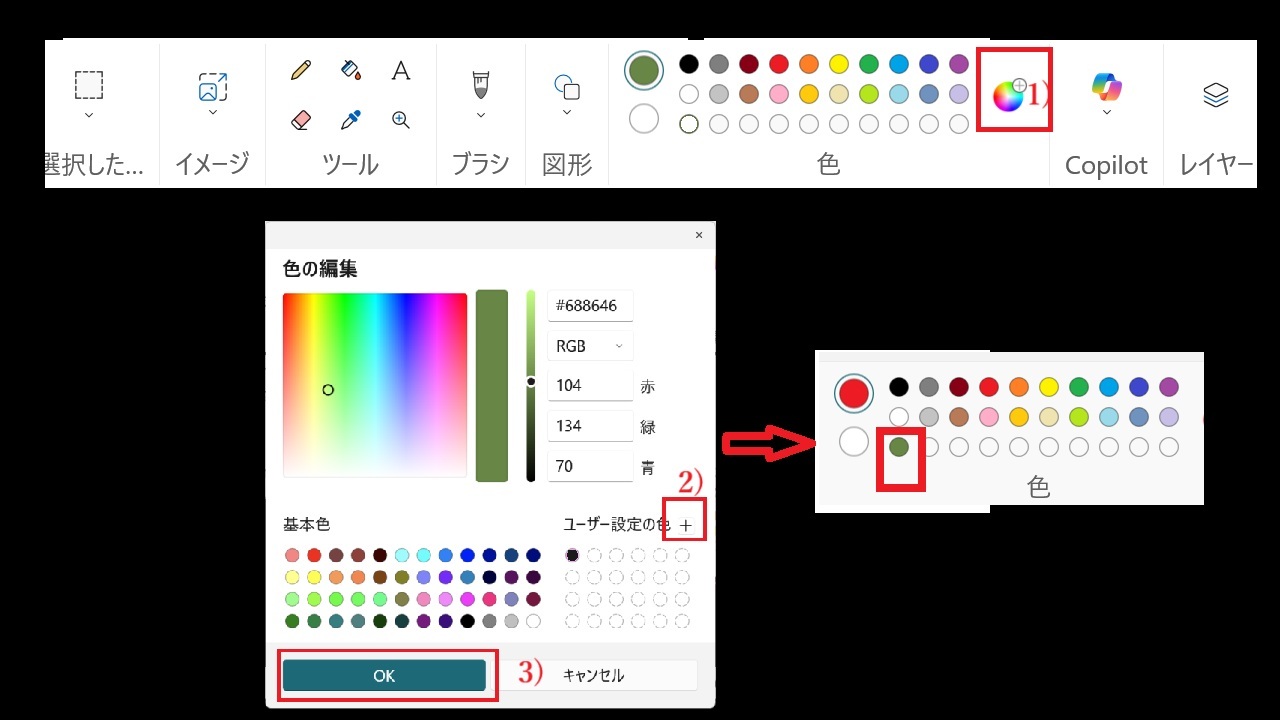 ペイントで表示された色以外の自分の調整した色を使いたい