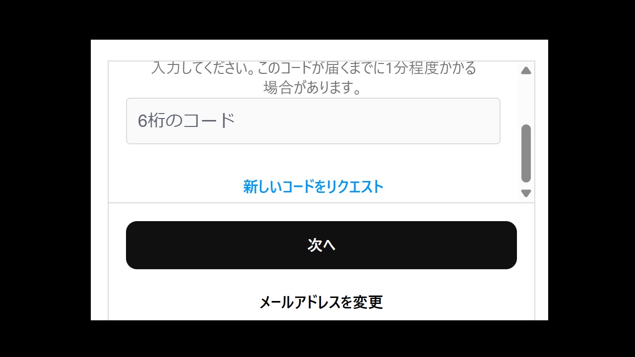 15.メールアドレスにコードが送られてくるので、コードを入力し、〔次へ〕を押す。