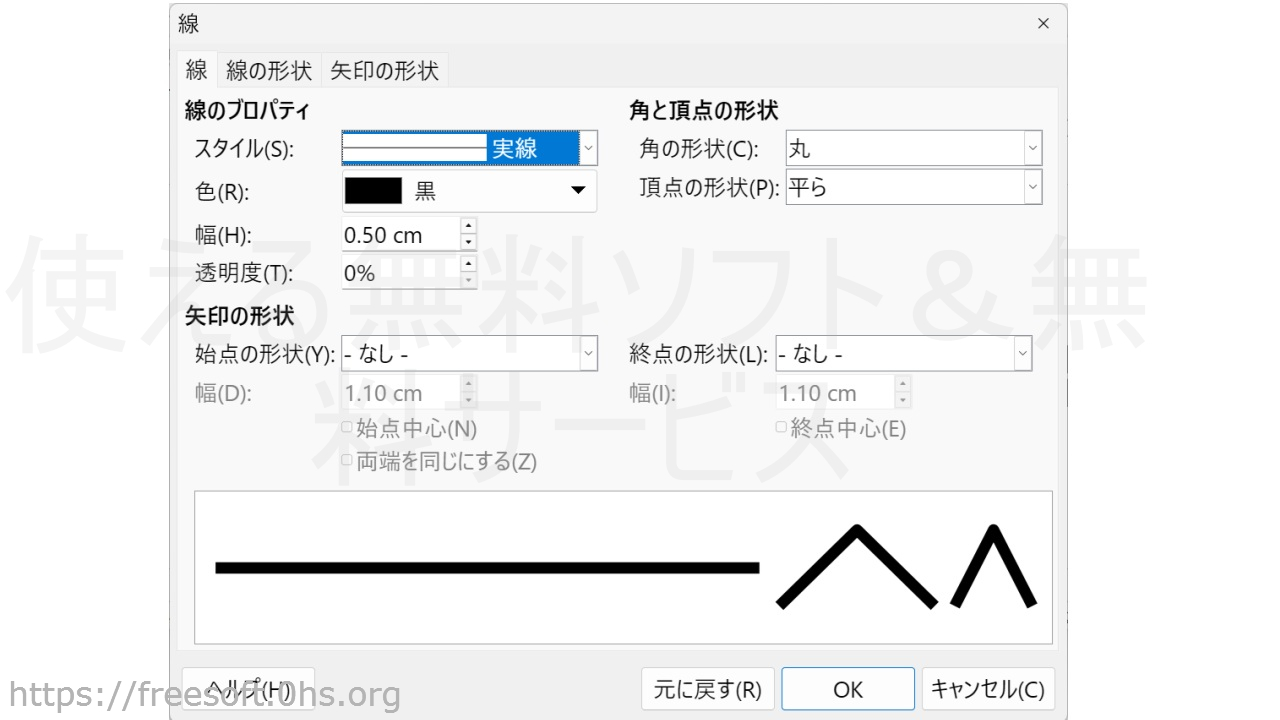 3.線の太さ・スタイル等を選んで〔OK〕を押す。