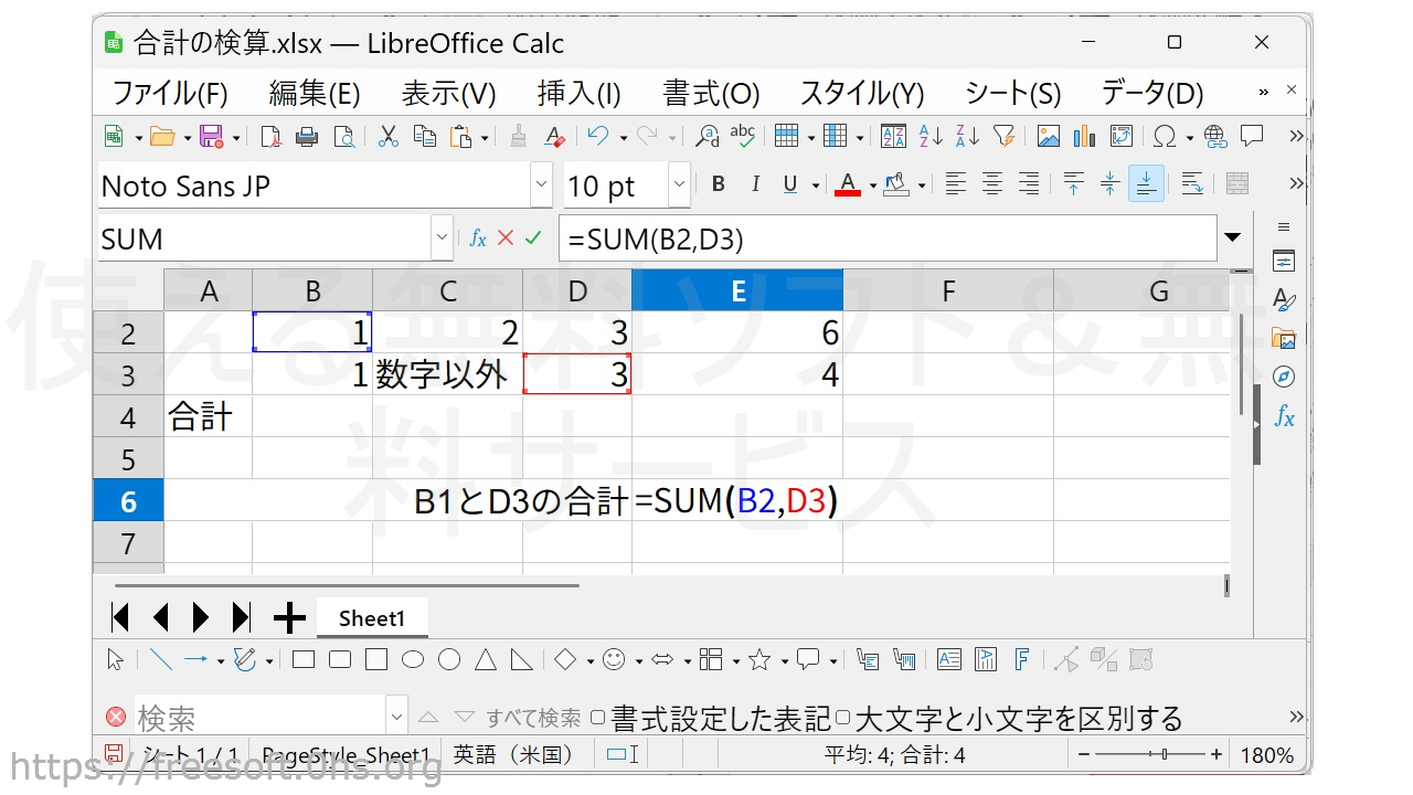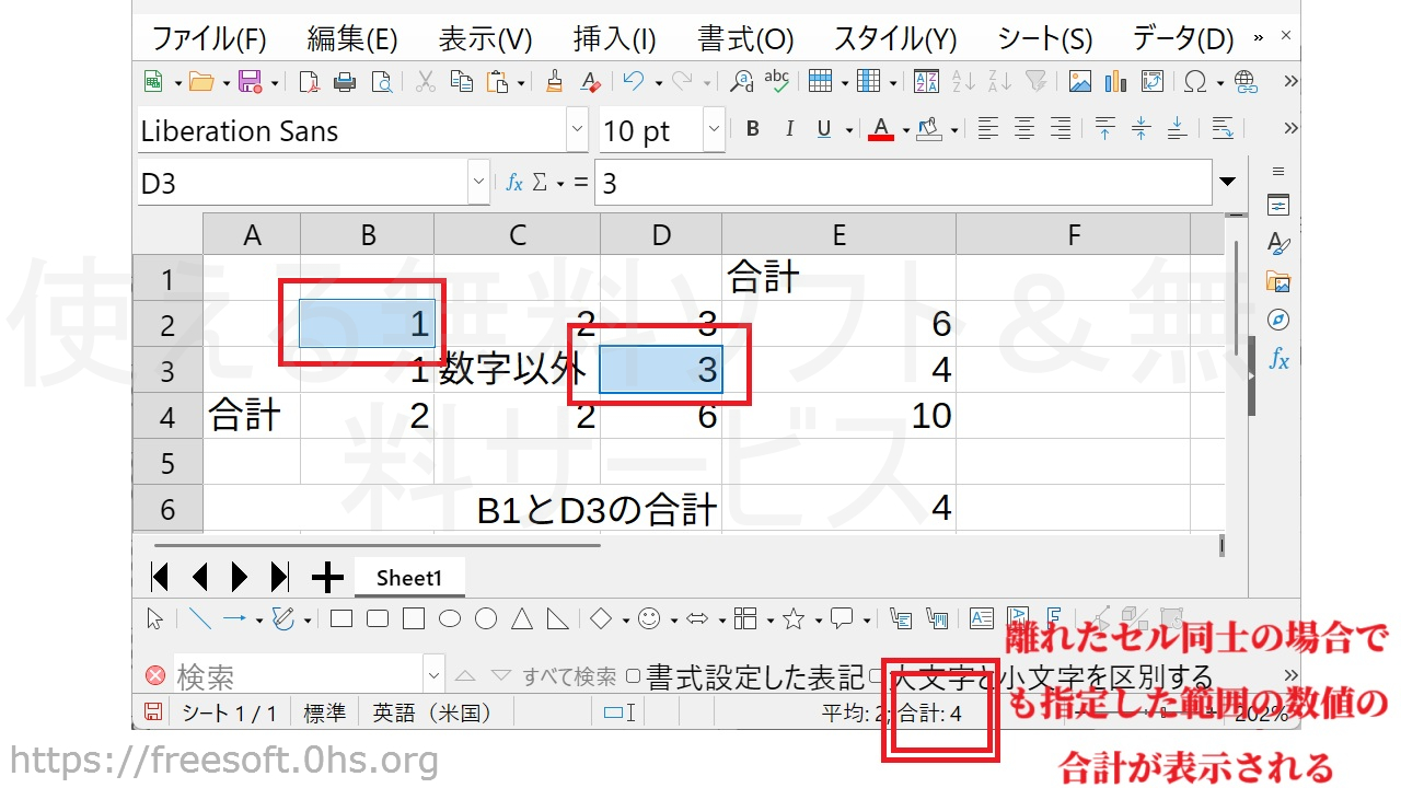 LibreOfficeCalcでもOpenOfficeCalcでも同じように合計の結果が正しいか見ることができるよ。