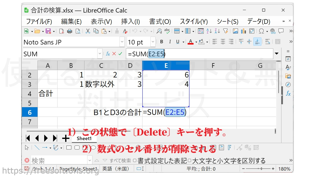 ちなみに、【Σ】ボタンを使った合算はOpenOfficeCalcでも同じようにできる。