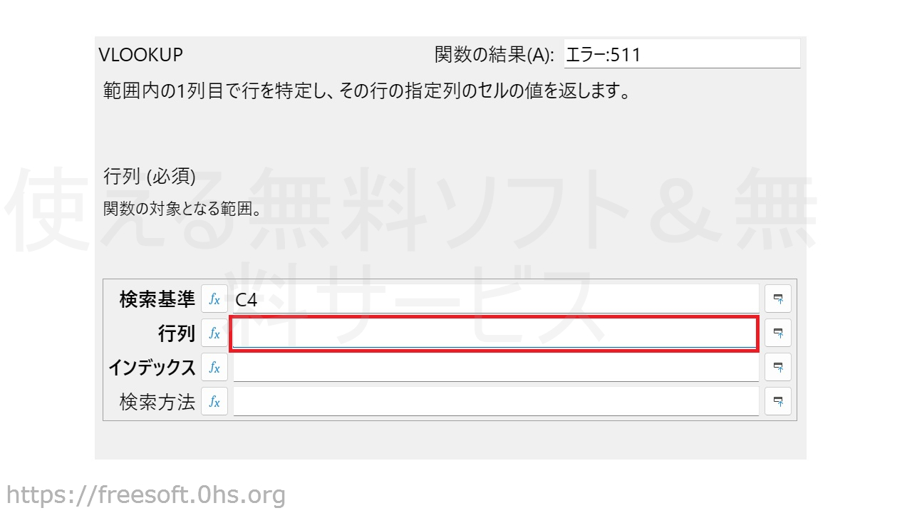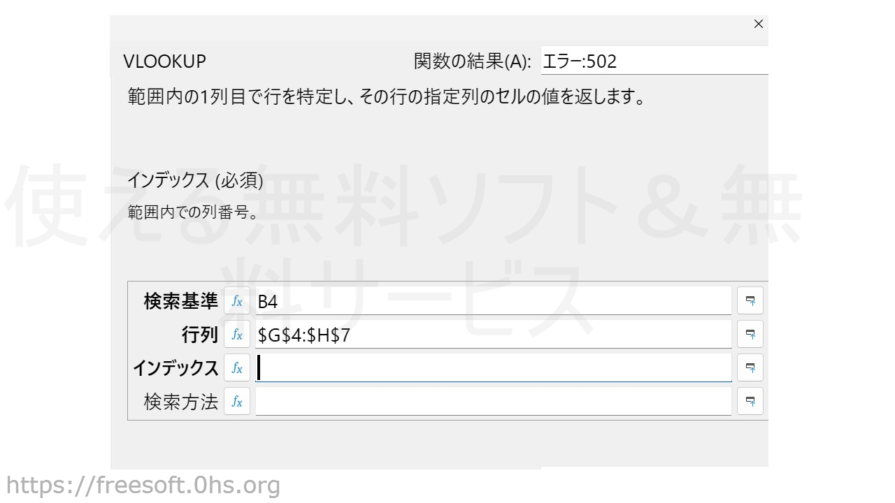 11.範囲指定した範囲の中で表示するものの列が何列目かを記入する。