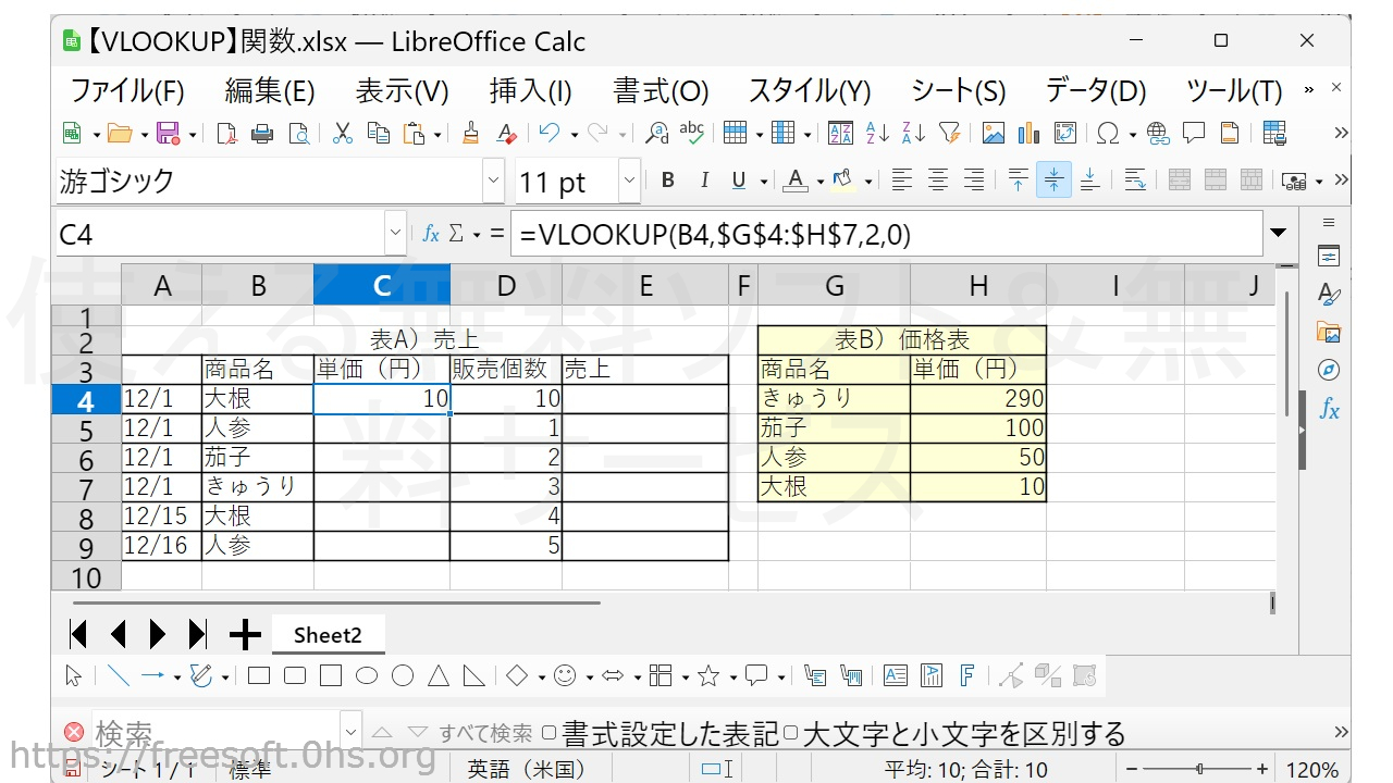 LibreOfficeCalcで【VLOOKUP】関数を使ってみよう
