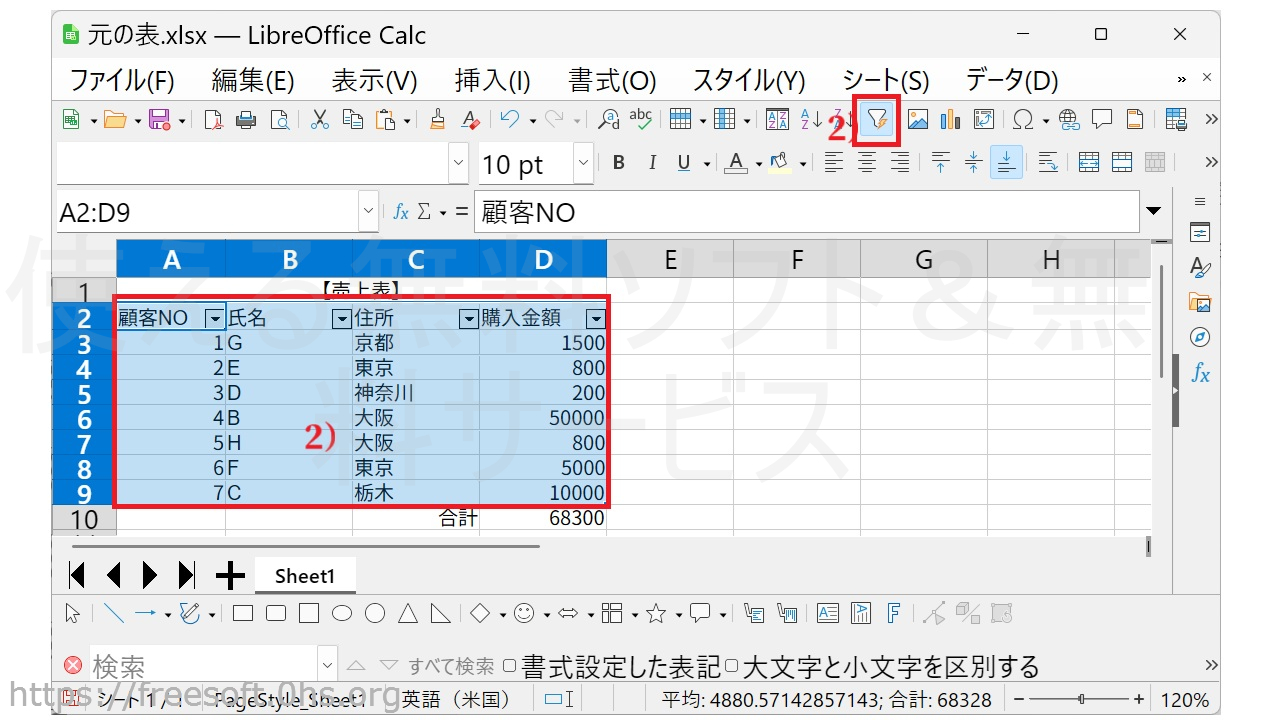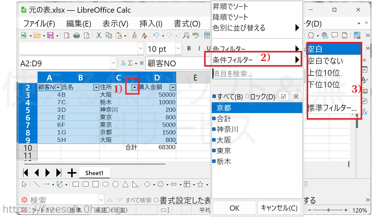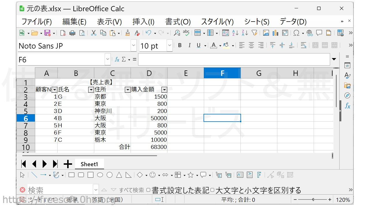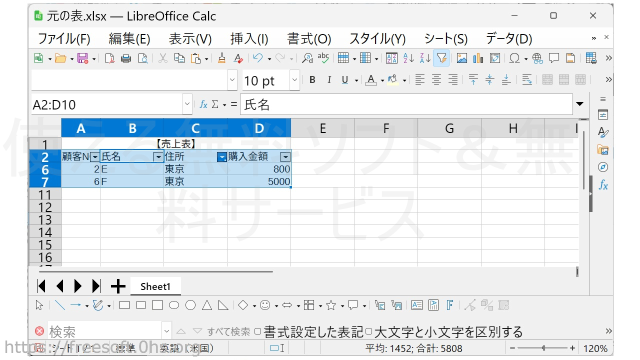 LibreOfficeCalcでオートフィルターを使う