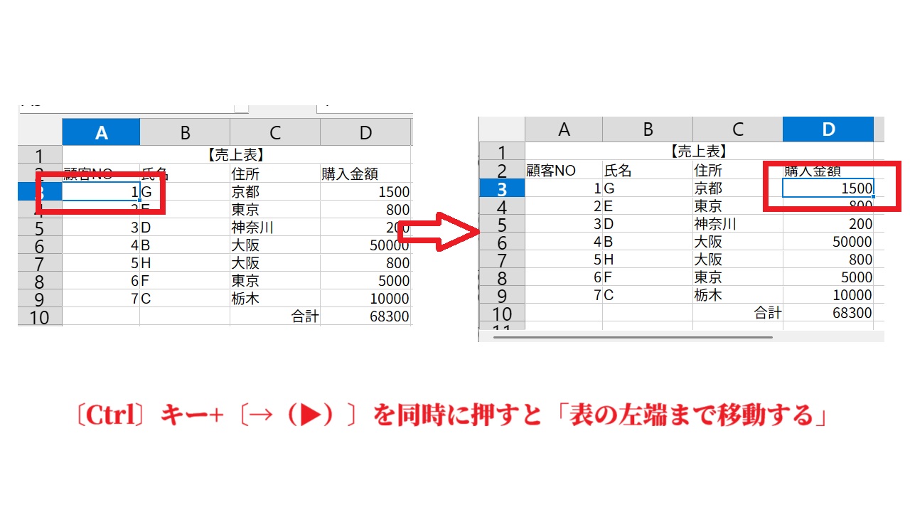 〔セルをクリック〕+〔Ctrl〕+〔Shift〕+〔→(▶)〕