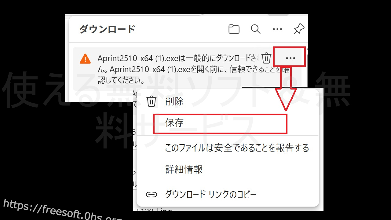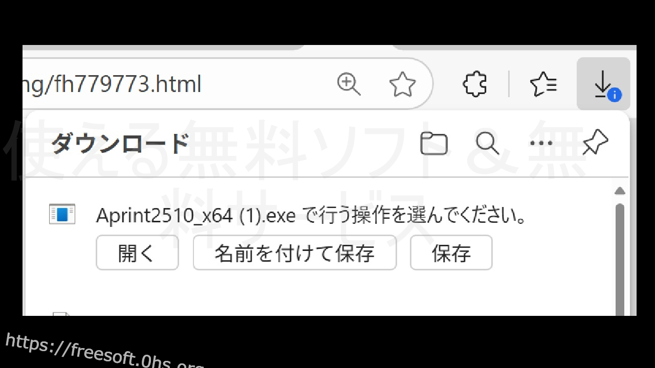 1.ダウンロードが終わったら「Aprint2510_x64 .exe」を右クリック→開く(または、ダブルクリック)でソフトのインストールが始まる。
