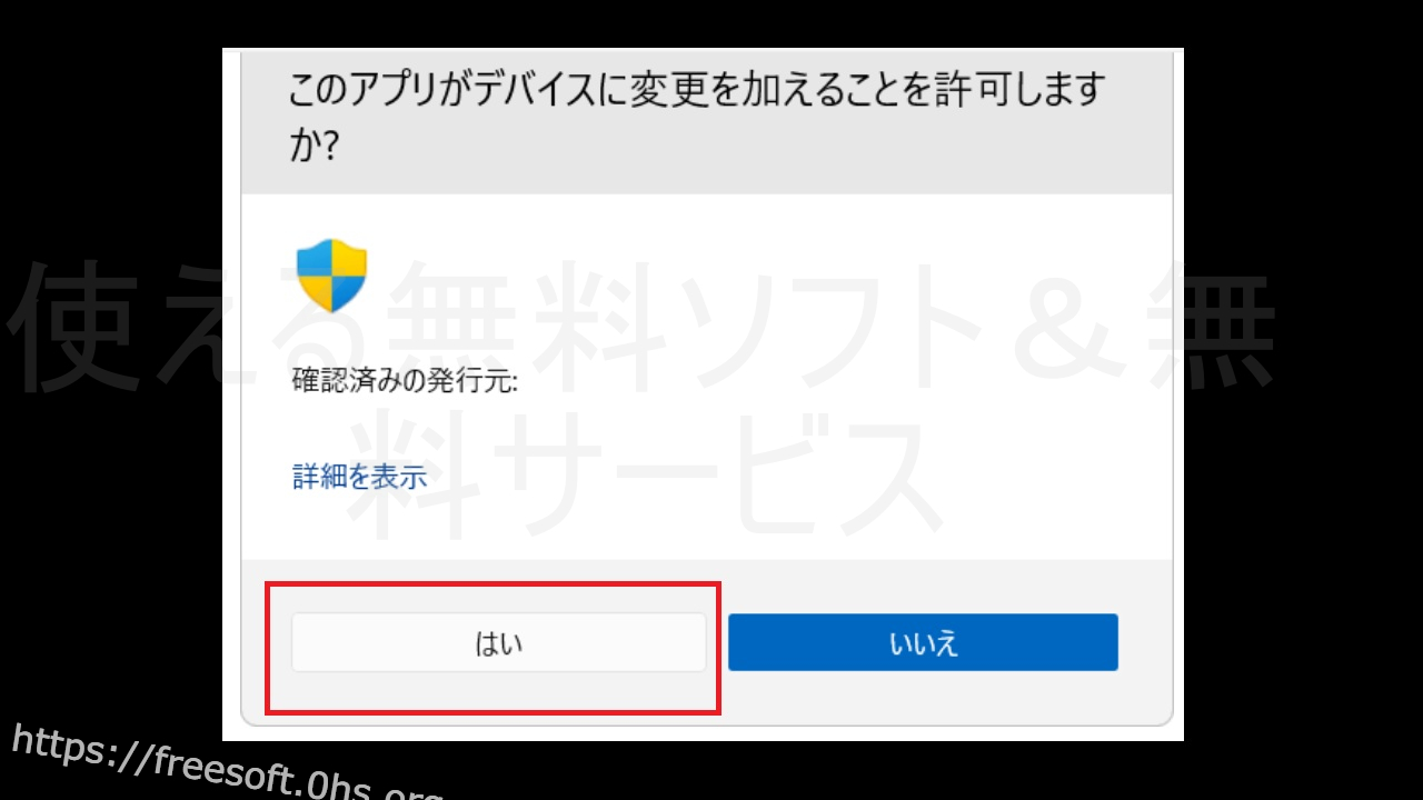 2.「このアプリがデバイスに変更を加えることを許可しますか?」という画面が出てくるので〔はい〕を押す。