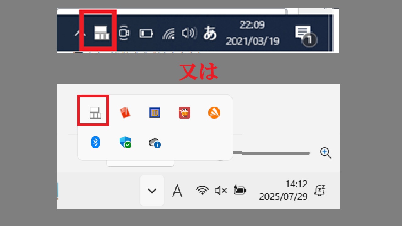 タスクバーの中に隠れている場合もあるのじゃよ。