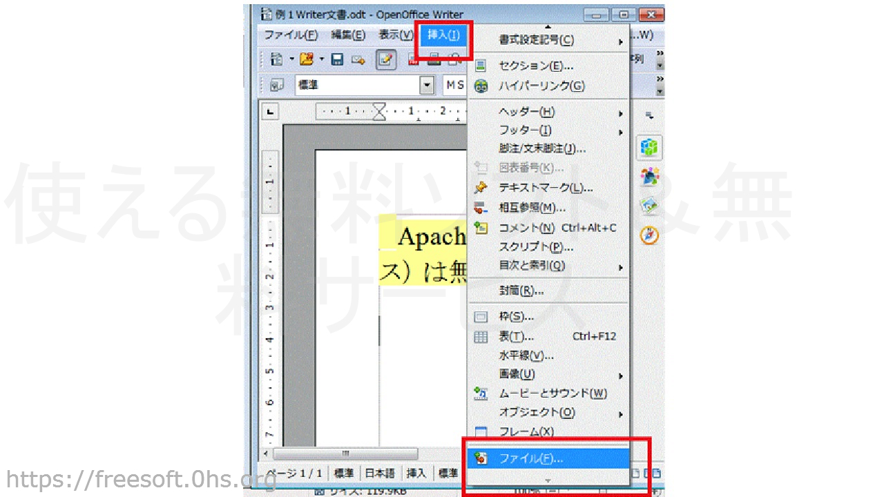 OpenOffice Writerの2つのファイル(ドキュメント)をひとつにする