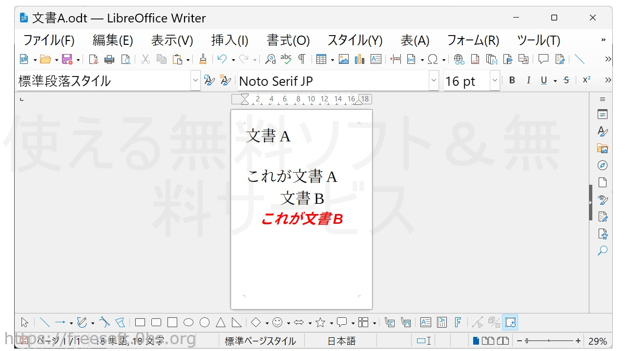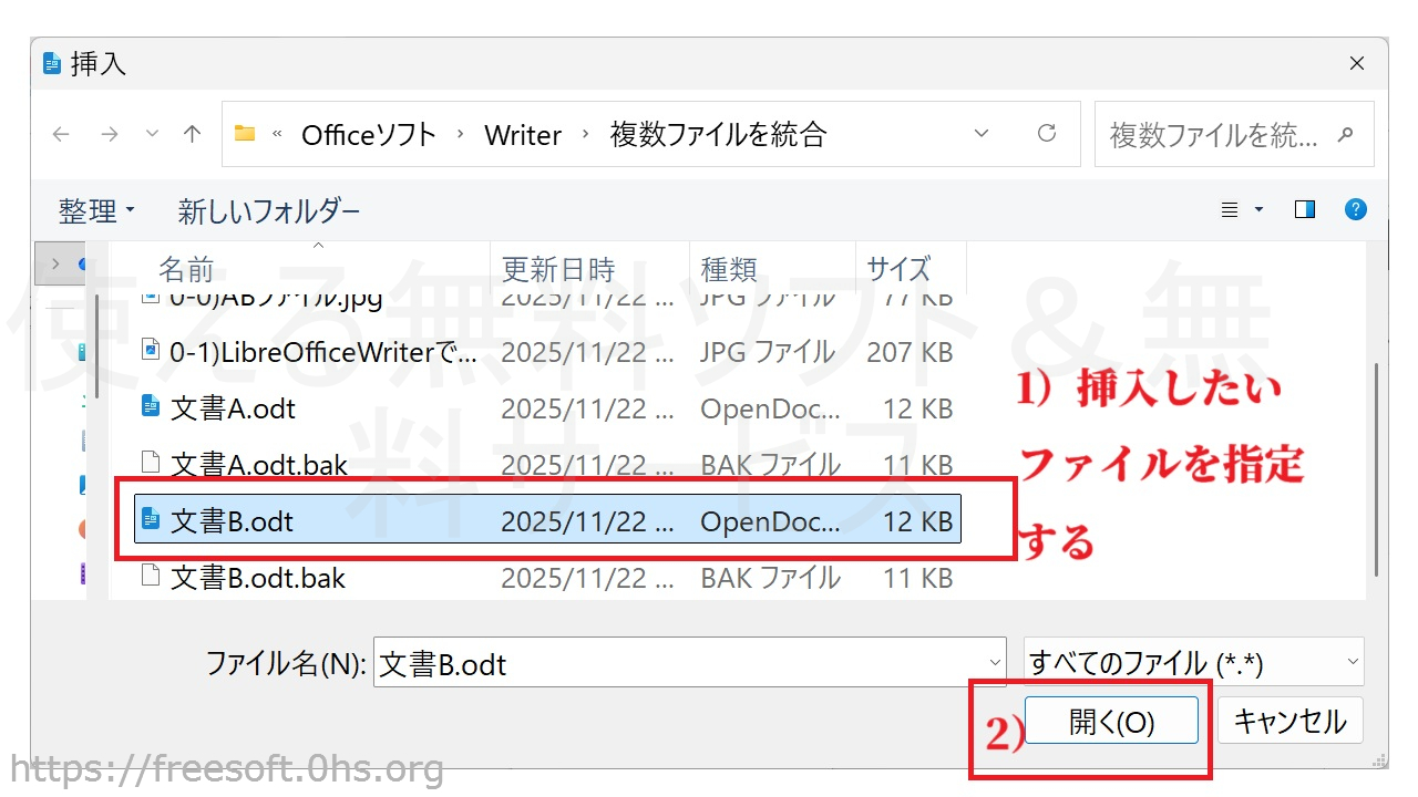 LibreOfficeWriterで複数の文書ファイルを一つにする方法
