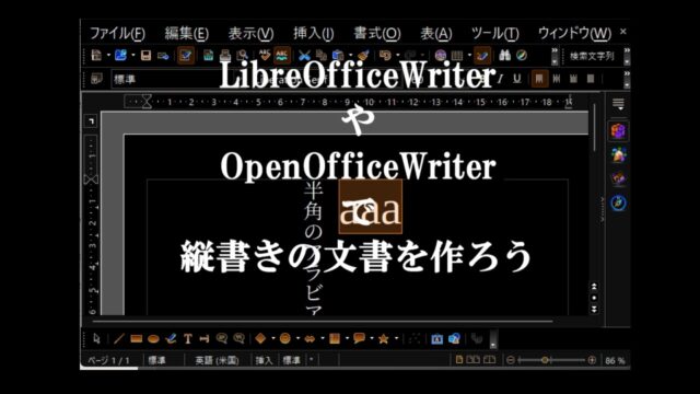 日本には、「正式な手紙や文書は縦書き」という習慣がある。LibreOfficeWriterやOpenOfficeWriterで縦書きの文書の作り方を覚えておくと便利だと思う。半角英数字を縦書きできれいに収める方法も覚えておこう。